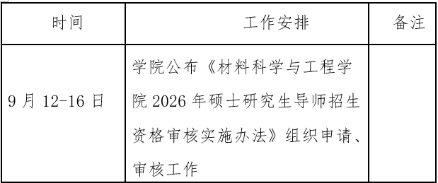 2)学位评定分委员会审核:学位评定分委员组织硕士生导师招生资格审核,依据《材料科学与工程学院2026年硕士研究生导师招生资格审核实施办法》对申请人的各项条件进行核查,加强对申请人政治表现、师德师风、学术诚信等方面进行考核, 实行师德“一票否决”。