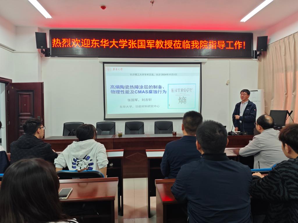 2024111日上午,东华大学教授、博导张国军应邀在新能源大楼1A-908开展学术报告,材料学院部分师生参加,院长毛卫国主持会议。