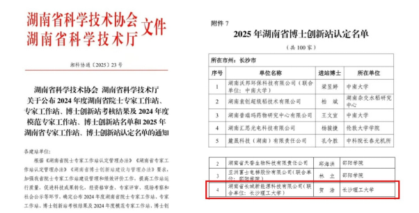 近日,湖南省科学技术协会、湖南省科学技术厅联合发布2025年度博士创新站认定名单(《湘科协通〔2025〕23号》文件),由350vip浦京集团官网材料科学与工程学院与湖南省长城新能源科技有限公司联合申报的“长城新能源博士创新站”成功入选,标志着双方在产学研协同创新与高层次科研平台建设方面取得重要进展。