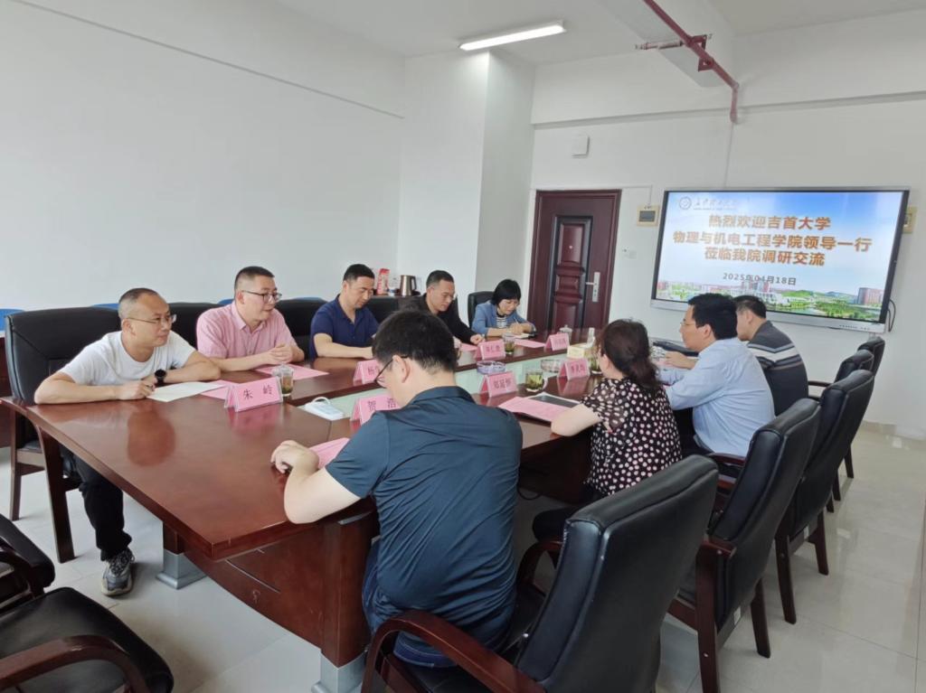 2025年418日上,吉首大学物理与机电工程学院副院长毕仁贵一行5人来我院进行调研活动,本次调研活动在新能源1号大楼924会议室举行学院党委书记郑延恒、副院长李灵均、新能源材料与器件系副主任金红广、实验中心主任贺浩参会