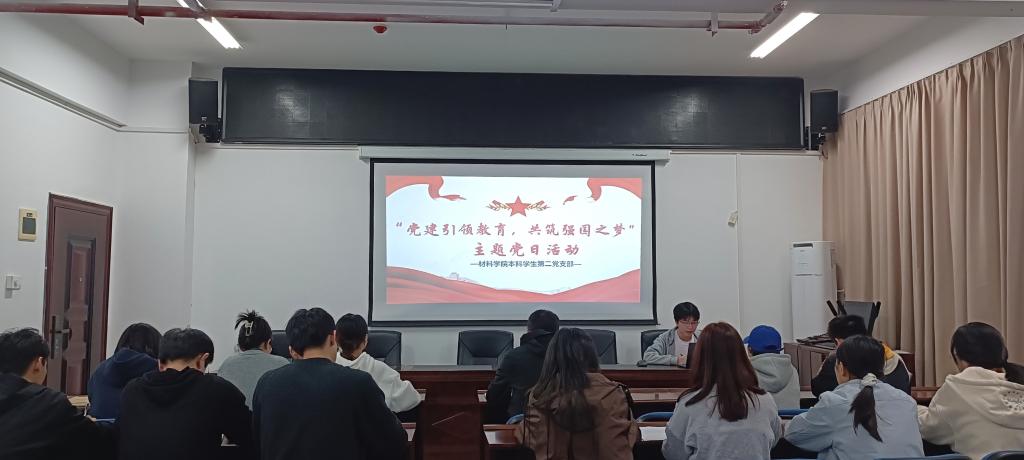 为强化党建引领作用,促进教育与国家发展相融合,激发学生党员的教育创新与担当精神,培养学生党员的社会责任感与服务意识,1022日晚上2000,材料科学与工程学院本科学生第二党支部于新能源一号楼908室开展了以“礼赞新中国、建功新时代、争做新先锋”为主题的党日活动,本次活动由党员尹烁主持。