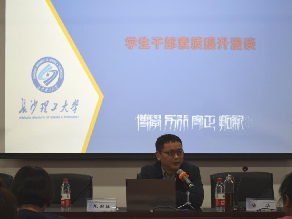 开班仪式结束后,张国强“学生干部素质漫谈”主题为学员讲授培训班第一课,从学院现状、学生干部定位、学生干部素质提升三个方面进行授课详细介绍了学院现状和发展规划,鼓励同学们要有专业自信,相信小学院也有大舞台。随后,他就学生干部的定位开始讲解,强调学生干部不是官,而是勇于担当者和付出者。最后,张国强指出学生干部要有大局意识,围绕学院整体布局来开展工作,提高思想道德素质、能力素质、人文素质等综合素质。