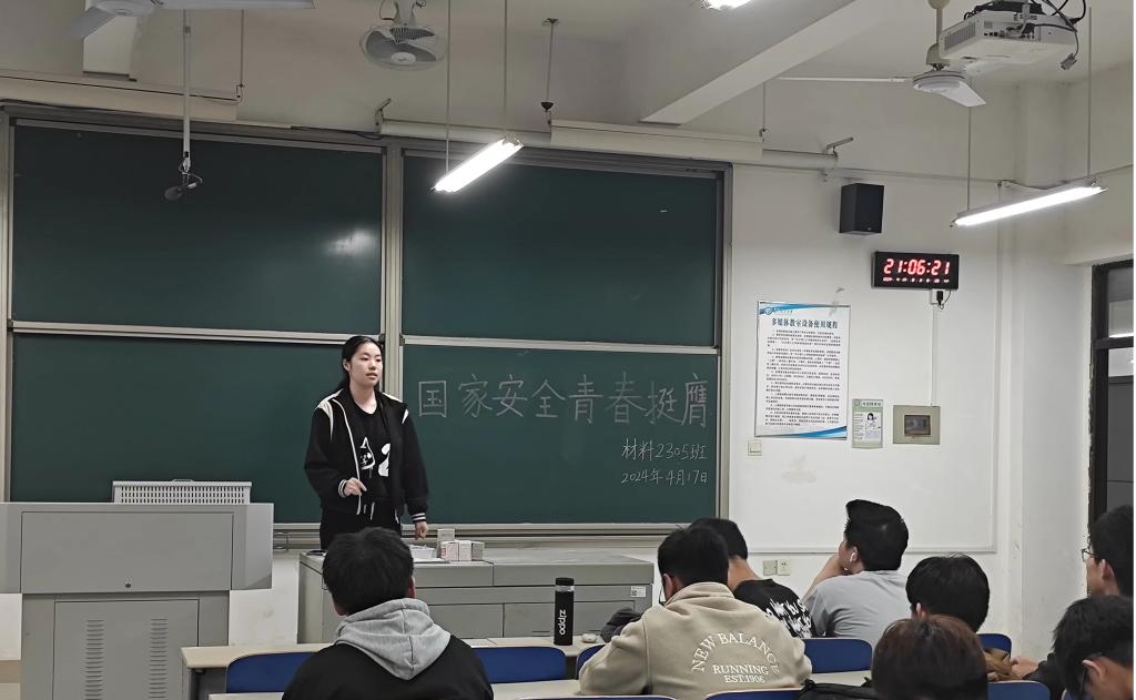 各班团支部积极开展本次活动,团员们热情投入通过观看相关视频、心得分享等多种形式展开学习,以此次国家安全教育主题活动为契机,增强忧患意识,做到居安思危,切实增强国家安全意识和保密意识,筑牢国家安全防线。无机2101班团支部通过开展主题演讲,共同体悟总体国家安全观的深厚文明底蕴