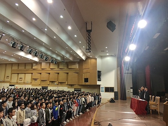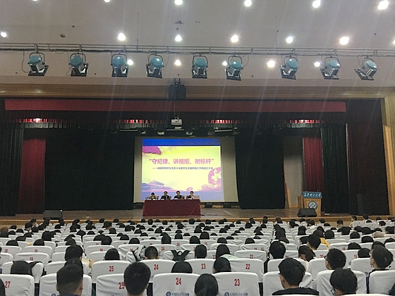 4月24日晚,城南学院“守纪律、讲规矩、树标杆”全体学生党员大会在五教大礼堂召开。学院党委副书记王明彦、党委委员兼学工部部长任艮丰、学生党建主任辅导员王丽丽、全体学生党员和本学期重点发展对象参加本次会议。会议由谭怀芝老师主持。