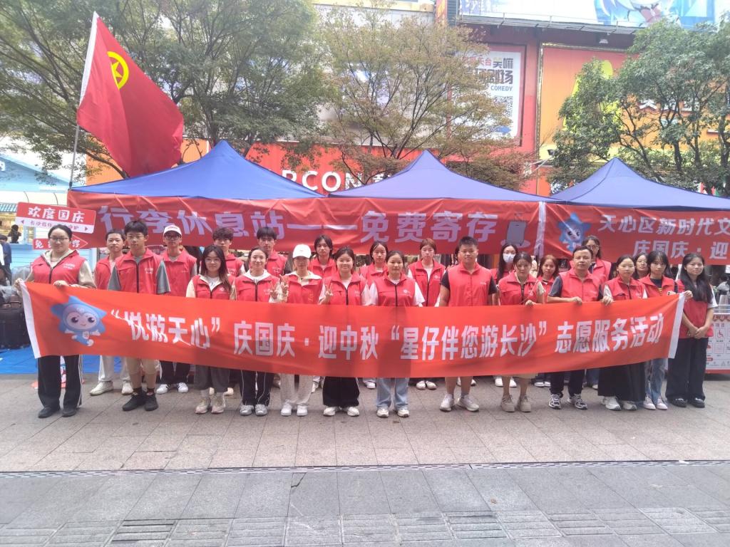 金秋送爽,丹桂飘香。10月1日恰逢国庆与中秋双节来临,350vip浦京集团官网城南学院14名青年志愿者代表积极参与“悦游天心”庆国庆·迎中秋“星仔伴您游长沙”志愿服务活动。他们在五一商圈、黄兴广场等核心区域,为往来游客提供文明引导、应急帮助、免费饮水等服务,以实际行动诠释青年担当,传递城市温度。