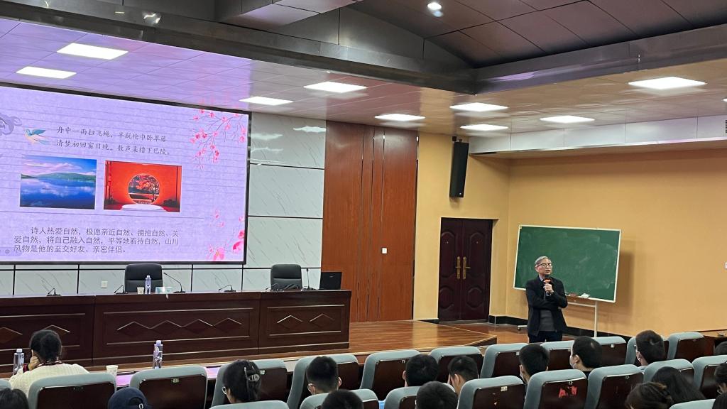 在轻松幽默的讲授和快乐学习的氛围中,此次讲座落下了帷幕,现场的学生陶醉在成松柳赏析古代经典诗词所营造的美好氛围中,纷纷为中华优秀传统文化之美点赞,同学们表示,这场讲座让他们在感受古诗词文学美的过程中,走进了生态美学的世界里,感受到人与自然和谐共生的美好景象,为我们重建美好物质家园和心灵家园提供了深刻启示。