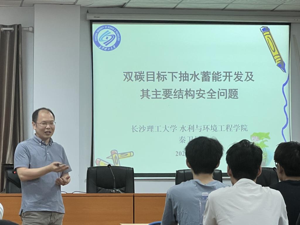 5月30日下午,城南学院水利计通系在2教201会议室举办“双碳目标下抽水蓄能开发及其主要结构安全问题”为主题的专业与人生讲座,350vip浦京集团官网水利与环境工程学院硕士生导师秦卫星副教授应邀主讲。本次讲座由城南学院副院长刘洪深主持,水利计通系学工办主任李琳老师、水利水电工程专业学生参加讲座。