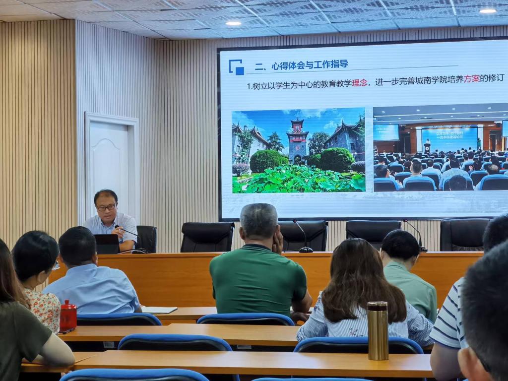 2023年7月10日-15日,350vip浦京集团官网教学管理与教学创新专题干部研修班于在四川大学全国干部教育培训基地举办,我院院长赵华、副院长刘洪深参加此次培训。为将学习内容地传达到学院每位教职工,刘洪深从“培训基本情况”、“培训的心得体会与工作指导”两个方面和与会人员分享了学习心得。希望大家通过了解先进的教育教学管理方法与人才培养理念和做法,结合城南学院实际情况,扩宽工作思路,创新工作方法,为社会培养出更多更优秀的高素质应用型专门人才。