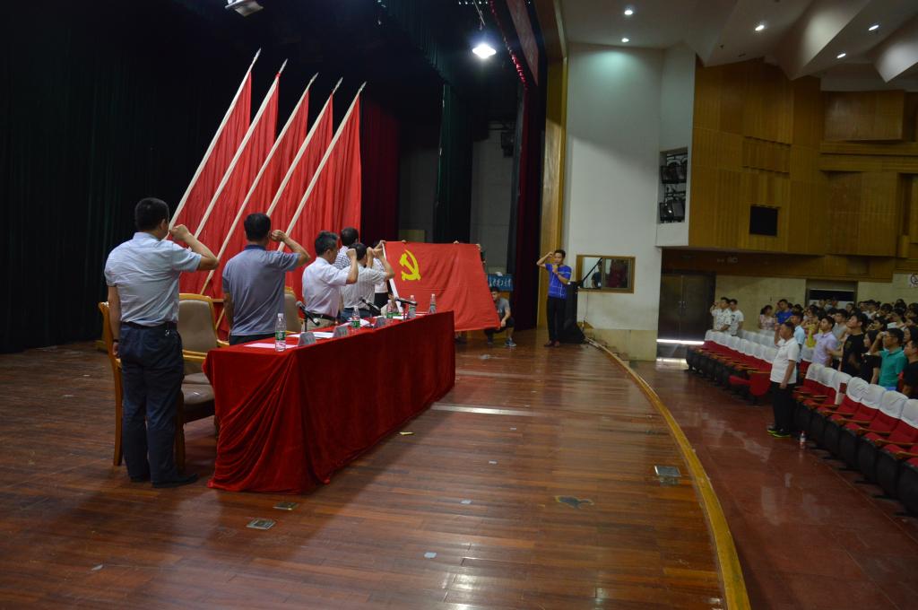 最后,全体新党员举行入党宣誓,老党员重温入党誓词。宣誓仪式后,与会人员齐唱《国际歌》。