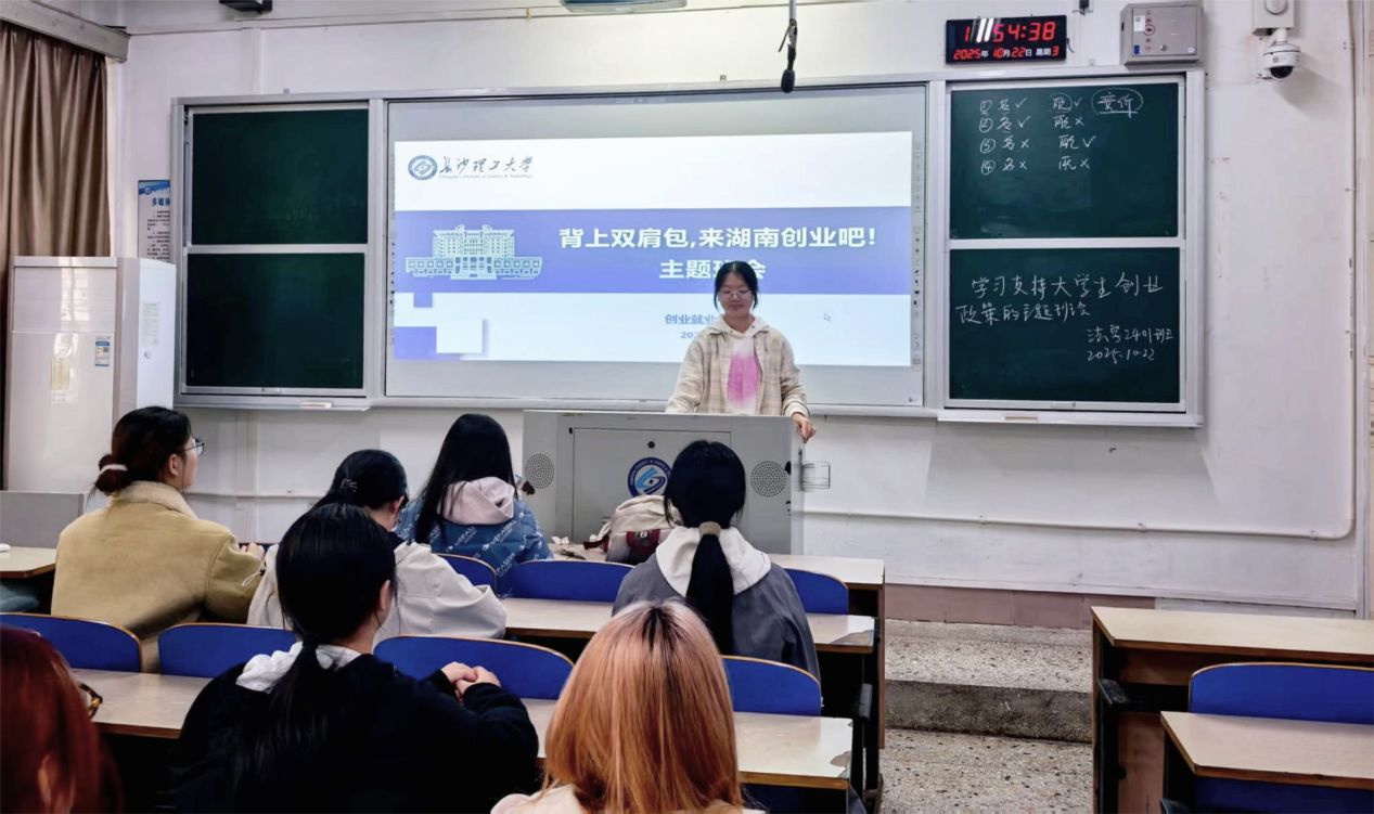 在各班班主任、班委的主持下,各班班会有序进行。各班创新创业委员结合精心准备的PPT,围绕湖南省及学校出台的一系列支持大学生创新创业政策措施进行了系统讲解,帮助同学们了解政策红利,培养创新意识,提升创新创业能力。