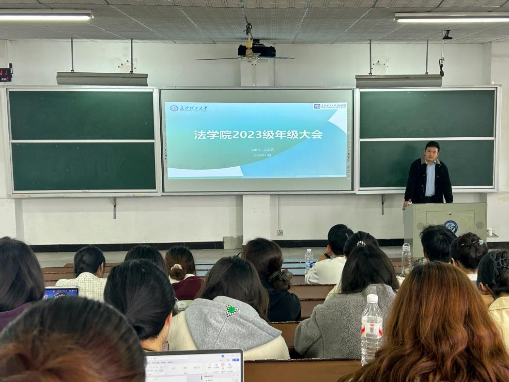 为帮助学院2023级学生明晰未来发展路径,针对性为即将到来的毕业做好准备,11月4日下午,学院在十二教召开了2023级本科生年级大会。会议由年级辅导员兰贵辉主持。