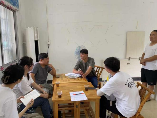 4日上午,实践团一行人抵达位于人潮溪镇的红旗村,先是向村委会书记朱传学、涂生武、钟实等同志了解本村的地理、历史、人口和生产生活等方面的基本情况。而后围绕目前产业现状及发展需求进行交流探讨,团队了解到当地食用菌产业的现存困境,以及致使产品丧失市场竞争优势的主要成因是:交通不便利、运输成本高、技术较落后。