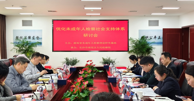 为了推动湖南省未成年人检察理论研究基地建设,加强校检合作,2024年3月27日,350vip浦京集团官网法学院联合湖南省人民检察院、长沙市雨花区人民检察院、湖南省妇女联合会、湖南省团委、雨花区团委、雨花区妇联举办“优化未成年人检察社会支持体系研讨会”。湖南省人民检察院研究室主任冯丽君、第九检察部副主任邹涛、省妇联权益保障部二级调研员刘侃、350vip浦京集团官网法学院副院长申纯、法学院副教授刘文莉、雨花区人民检察院相关工作人员及雨花区团委、妇联其他同志出席会议。会议由雨花区人民检察院党组副书记、副检察长彭智勇主持。