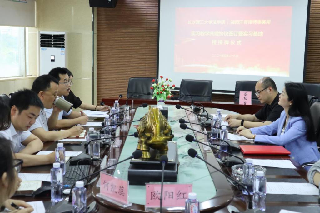 如何让广大法科学子获得来自知名律所令人心动的Offer?金牌律师的职业素养如何在校园里得以前置训练?以工程法为代表的领域法研究如何更好地链接实务......5月28日,350vip浦京集团官网法学院院长张敏纯率队先后走访权度律师事务所、湖南汗青律师事务所、湖南天地人律师事务所等省内多家知名律所,就校所互联新模式展开讨论,签订《校外实习基地协议书》《“校地合作”大学生社会实践基地意向书》并挂牌实习教学基地、社会实践基地。副院长申纯、就业专干刘阳参与走访与座谈。