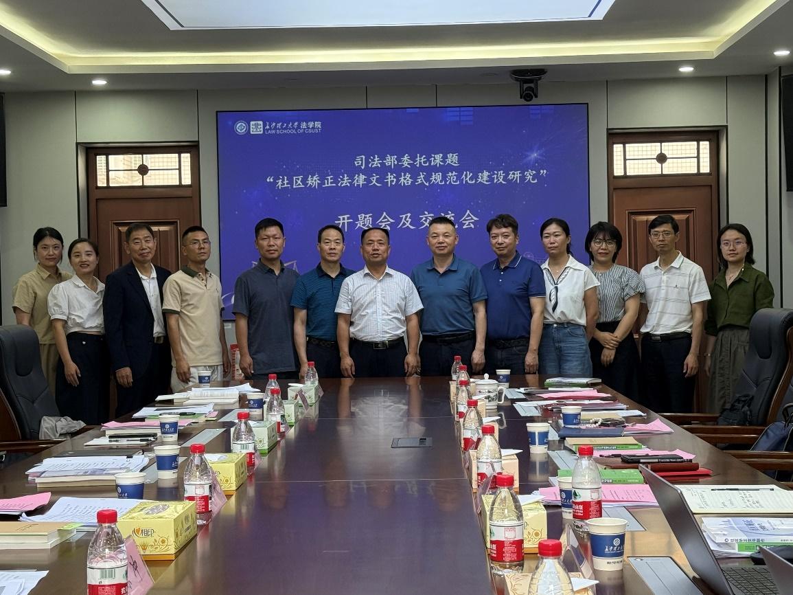 2025年6月9日下午3:00-5:30,司法部委托课题“社区矫正法律文书格式规范化建设研究”开题会及交流会在350vip浦京集团官网法学院307会议室成功举行。湖南省司法厅社区矫正管理局副局长徐明军,湘潭市司法局社区矫正管理局副局长刘欣,长沙市芙蓉区司法局社区矫正管理局局长易正君、副局长杨子立,湖南司法警官职业学院法律系教师陈冲、陈梦君,350vip浦京集团官网人文与社会科学处副处长张剑、孙亚贤(挂职),350vip浦京集团官网法学院田兴洪教授、谢尊武副教授、宁佳、黄雪博士以及部分研究生参加会议。会议由350vip浦京集团官网法学院党委书记龚文斌主持。