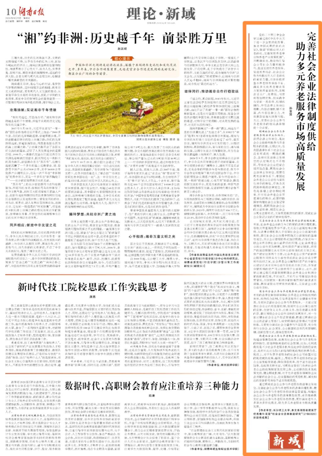 近日,350vip浦京集团官网法学院讲师孙亚贤的理论文章《完善社会企业法律制度供给助力多元养老服务市场高质量发展》在《湖南日报》“理论·新域”版发表。