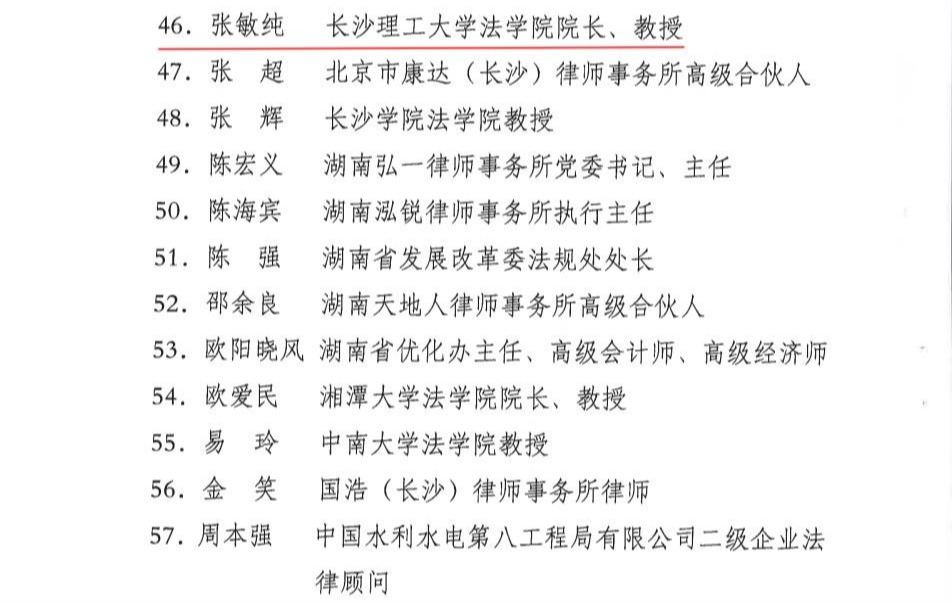 近日,省司法厅开展了湖南省政府立法专家选聘工作,我院院长张敏纯教授、姜明教授、副院长徐莉副教授三位老师受聘。