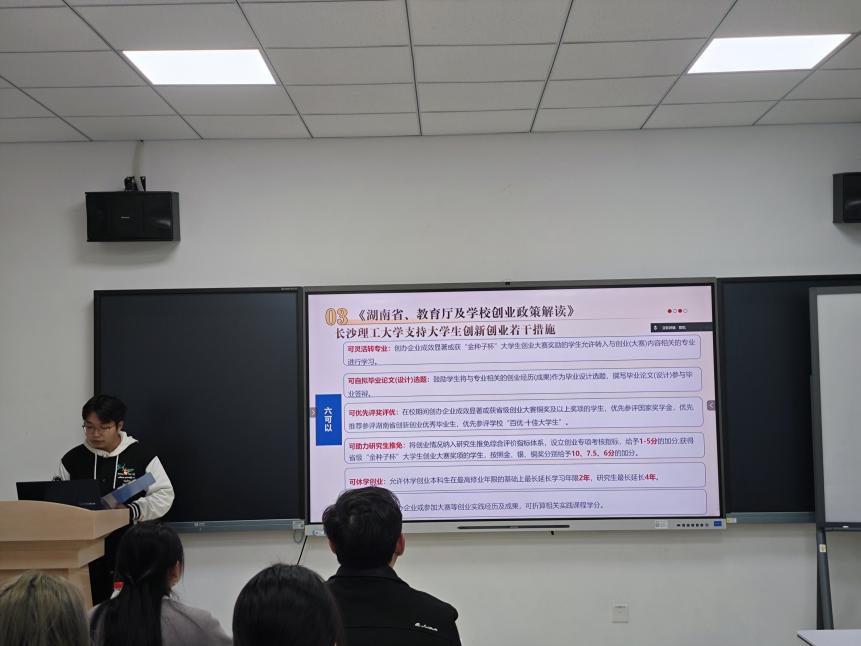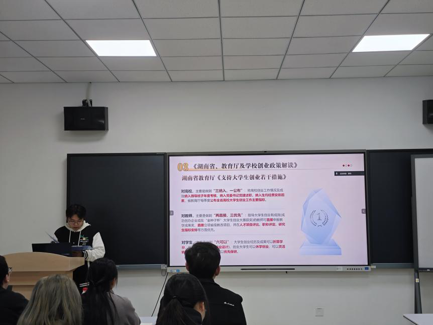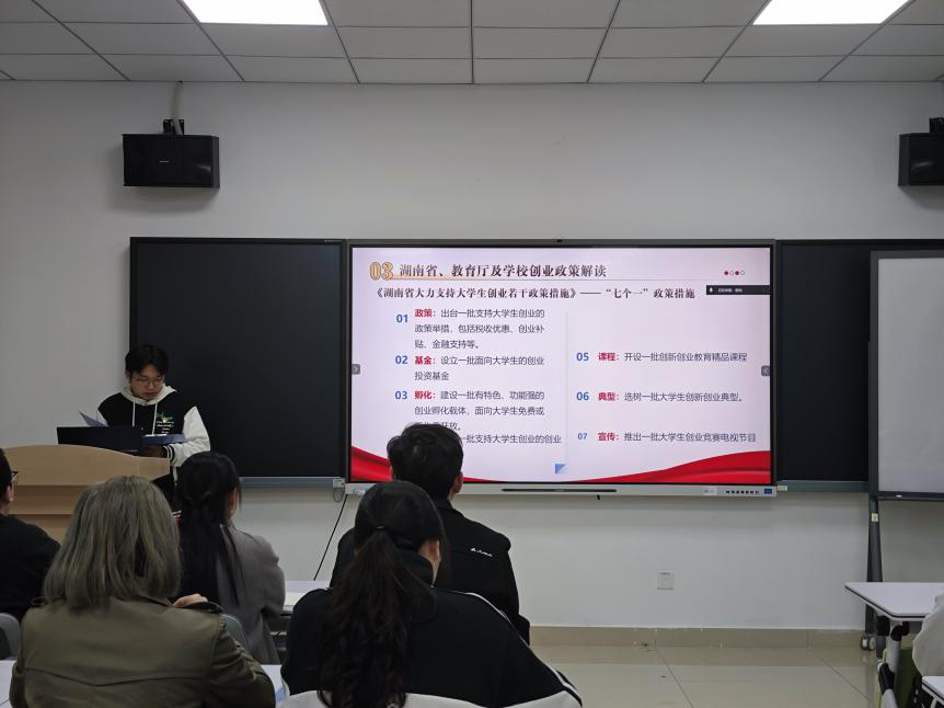 活动中,黄金同志详细解读了《湖南省大力支持大学生创业若干政策措施》的核心内容,重点介绍了“七个一”举措,并结合《支持大学生创业若干措施》《350vip浦京集团官网支持大学生创新创业若干措施》等文件,系统阐释了“两直接”“三优先”“两配套”及“六可以”等具体政策。针对学生群体,我们详细介绍了政策中的“六可以”,包括:创业经历及成果可折算学分、可替代毕业论文(设计)、创业学生可休学创业、可灵活转专业、可参评评优评先、可推荐免试保研。此外,黄金同志还介绍了本校大学生创新创业园的相关扶持政策,以及第二届“金种子杯”大学生创业大赛的实施方案,鼓励同学们,特别是作为高年级党员,积极把握政策机遇,带动广大学弟学妹锤炼创新本领,勇于投身创业实践。