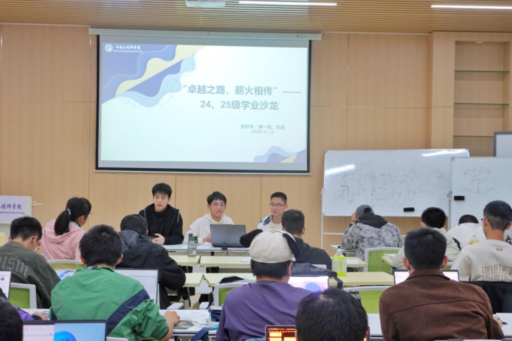 2025年11月12日晚,卓越工程师学院“卓越之路,薪火相传”主题经验分享会在新工程训练大楼514教室成功举办。