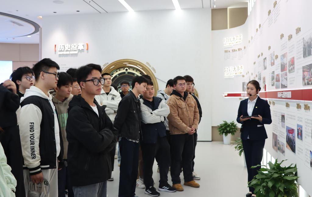 学生实践团首先前往中车株洲所陈列室参观企业的发展历程,跟随讲解员了解轨道交通、电力成就、株洲所全产业链及企业文化。在讲解员的引导下,学生们依次参观了陈列室内精心布置的展品和图表,一件件展品讲述着中车株洲所在轨道交通领域的不凡贡献,展现了其在全球电力牵引装备现代化进程中的卓越作为。