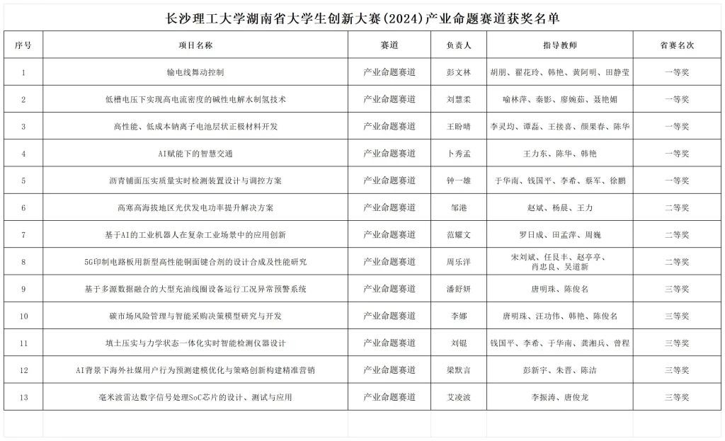 附:浦京湖南省大学生创新大赛(2024)产业命题赛道获奖名单