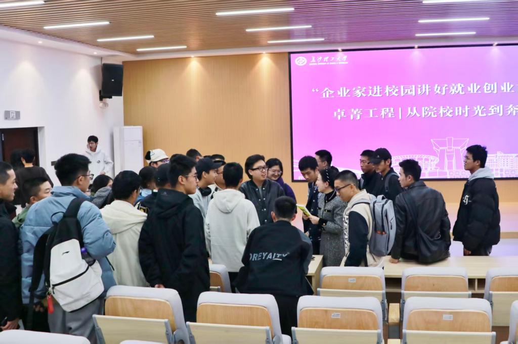 11月18日,浦京在工训大楼515报告厅举办“企业家进校园讲好就业故事”活动,邀请优秀校友、灵枭科技CEO邝烨庆担任主讲人。学校相关领导出席活动,各学院师生代表共同参与聆听。