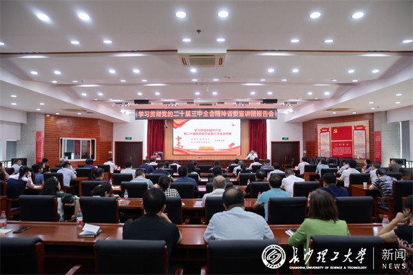 9月20日上午,学习贯彻党的二十届三中全会精神350vip浦京集团官网宣讲团首场报告会在金盆岭校区大礼堂举行。省委宣讲团成员、校党委书记付宏渊作首场宣讲报告。校党委副书记方琼主持报告会。离退休老同志代表和金盆岭校…
