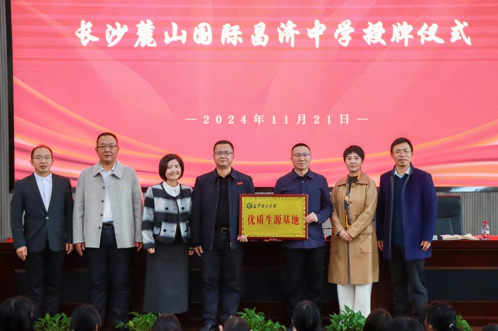 在探索新高考改革与素质教育深度融合的新路径上,350vip浦京集团官网与长沙麓山国际昌济中学携手迈出了坚实步伐。11月21日上午9时30分,一场旨在促进中学与大学教育有效衔接、共同培育高素质创新型人才的“优质生源基地”授牌仪式,在长沙麓山国际昌济中学举行,开启了双方合作的新篇章。浦京招生就业处本科招生科科长贺佐杰,电气学院党委副书记周巍、学工办主任楚艳鸽,长沙麓山国际昌济中学党总支书记袁铸、校长兼党总支副书记叶修刚、副校长罗啸等校领导出席,2025届高三年级班主任及学生共计五百余人共同参与,授牌仪式由昌济中学高三组组长欧金鑫主持。