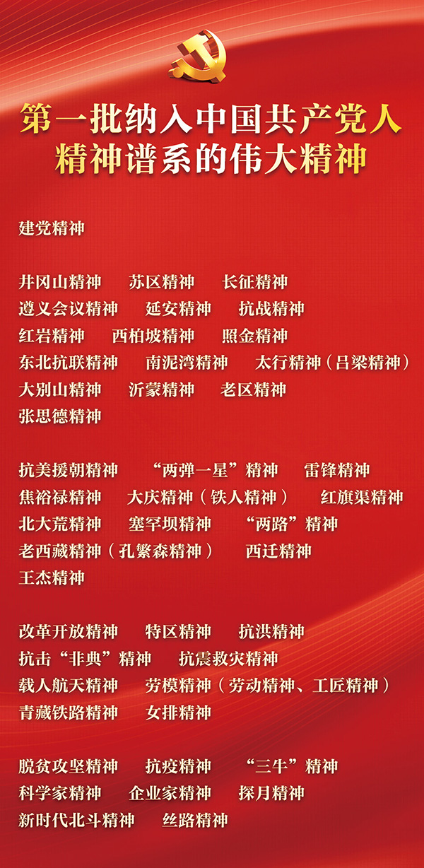 问渠那得清如许?为有源头活水来。伟大建党精神和中国共产党人精神谱系是源与流的关系,源远才能流长;是根与叶的关系,根深才能叶茂。我们党在各个历史时期形成的不同精神,在党的百年奋斗历程中不断繁衍和传承,本质都是伟大建党精神在不同时代的具体呈现和深度拓展,是伟大建党精神的丰富和发展。井冈山精神、长征精神、遵义会议精神、延安精神、西柏坡精神、抗美援朝精神、“两弹一星”精神、改革开放精神、特区精神、脱贫攻坚精神、抗疫精神等伟大精神,构建起了中国共产党人的精神谱系。以伟大建党精神为源头的这一系列精神,跨越时空、历久弥新,集中体现了党的坚定信念、根本宗旨、优良作风,凝聚着中国共产党人艰苦奋斗、牺牲奉献、开拓进取的伟大品格,深深融入我们党、国家、民族、人民的血脉之中,为我们立党、兴党、强党提供了丰厚滋养。