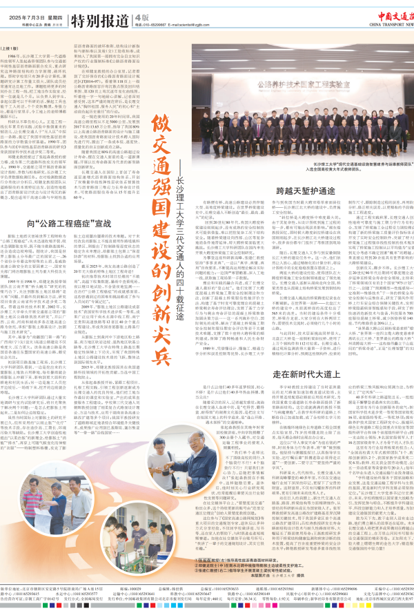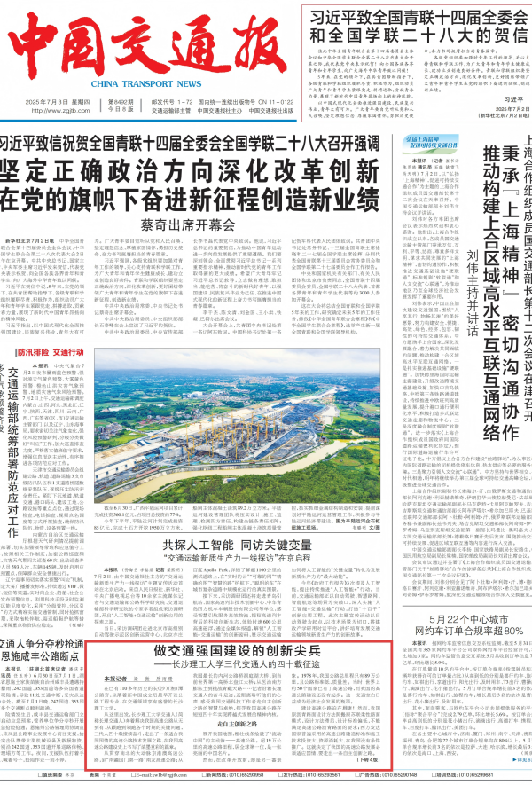 7月3日,《中国交通报》头版+整版刊发报道《做交通强国建设的创新尖兵——350vip浦京集团官网三代交通人的四十载征途》,讲述浦京三代交通人四十载接续奋斗,走出了一条适合我国国情的高速公路技术发展之路,在我国高速公路建设史上书写了浓墨重彩的篇章。