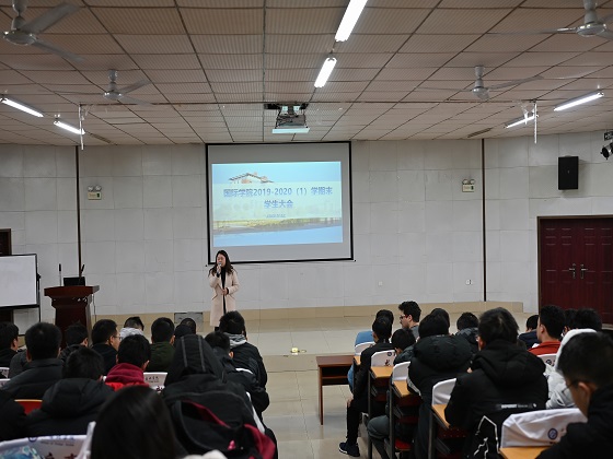为进一步增强学生安全意识和自主学习意识,提升学生英语学习兴趣,1月2日下午,国际学院全体学生安全教育及学业指导大会在文科楼圆厅召开。学院党总支副书记兼副院长张锐、学工办全体辅导员及全体学生参加。