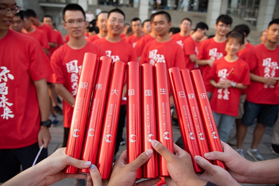 接着,学院领导老师、十余名来自一带一路沿线国家的留学生代表和同学们一起,手持鲜艳的五星红旗,传递印有“祝伟大祖国生日快乐”的接力棒,参加向中华人民共和国成立70周年献礼的国旗接力传递祝福活动,大家用校园接力跑的形式来传承和致敬革命先烈们为新中国成立流血流汗、不怕牺牲的可贵品质,展现出国际学院师生对祖国厚重与炽热的情感。接力活动中,来自不同国家的来华留学生们纷纷为中华人民共和国成立70周年献上祝福,同时也衷心希望世界各国能团结一心共同前行,推动构建人类命运共同体。