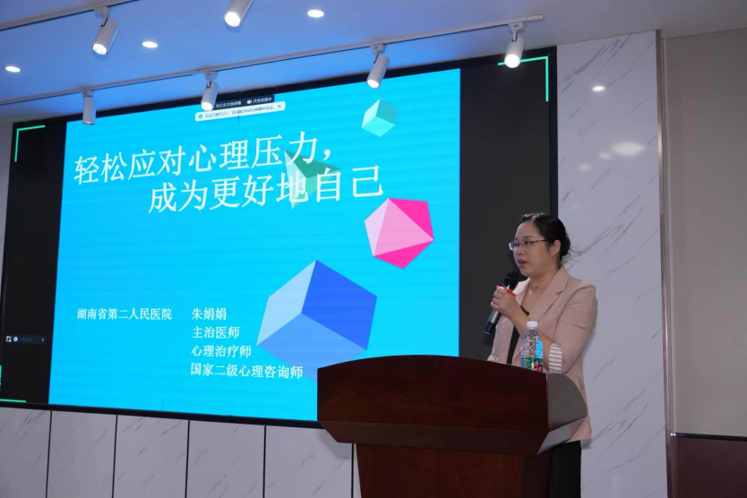 5月20日晚,国际工学院、卓越工程师学院、外国语学院在文科楼D207联合开展主题为“大学生压力及情绪管理”的朋辈培训专题讲座。本次讲座由湖南省第二人民医院主治医师、国家二级心理咨询师朱娟娟主讲。