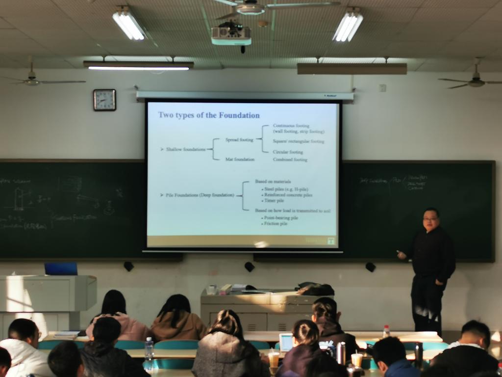 本次引进6门课程,分别为2016级Foundation Analysis and Design (基础分析与设计)和Transportation II(交通运输工程II),2017级 Civil Engineering Materials(土木工程材料)和Design of Concrete Structure(混凝土结构设计),以及2018级Dynamics(动力学)和Mechanics of Materials(材料力学)。全部课程采用全英文授课和考核,分别由美国田纳西大学诺克斯维尔分校Baoshan Huang教授、美国田纳西大学査塔努加分校Fomunung Ignatius教授、Mbakisya A. Onyango副教授、Weidong Wu副教授、Joseph Owino教授和田纳西州立大学Deo Chimba副教授承担教学。授课时间从本学期开始与学校同步,授课教室集中在云塘综合教学楼。