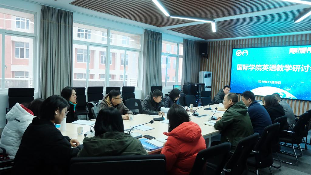 为增进教改试点班和中外合作办学项目英语教学各参与方的交流与了解,加强英语教学课堂与课外的多方协同,改善英语教学效果,1128日下午,国际学院在新能源大楼1号楼416会议室召开英语教学专题研讨会。外国语学院黄坚副院长、基础部主任冯春、提高部主任谷丰、任课教师代表周幸、钟桂蓉、刘坛孝、张向阳,学诲教育代表曾耘何罗、谢巧艳、张程俊,国际学院院长陈瑜、党总支副书记吴振华、副院长秦卫星以及教务办全体老师参加。会议由国际学院英语课程群负责人黄坚主持。