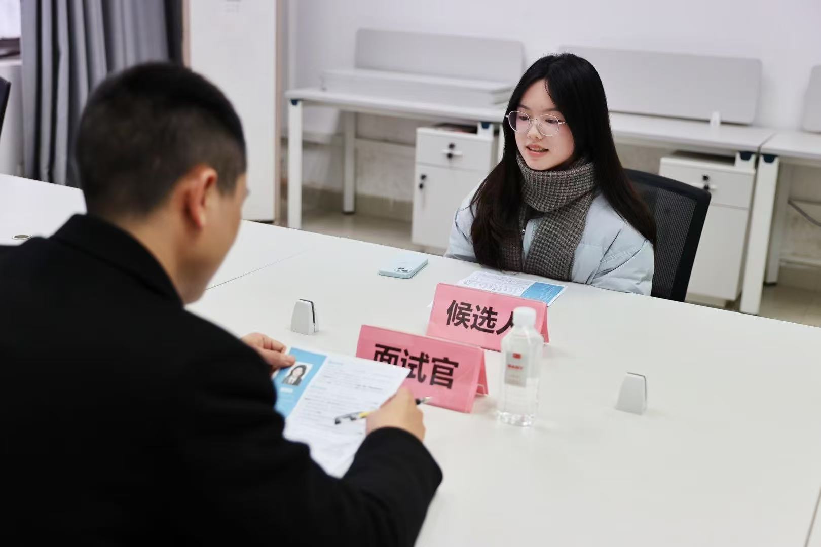 师生一行先参观了三一机器人公司的展厅和生产车间,近距离了解了工业机器人在智能制造领域的广泛应用。随后,在座谈会上,公司人力资源负责人详细介绍了企业的发展历程、核心技术、产品体系及未来规划,并分享了行业发展趋势和人才需求信息,还就学生关心的职业发展路径、岗位要求及薪资待遇等问题进行了详细解答。此外,34名2025届本科毕业生参与了现场求职面试。公司研发、商务、营销等部门的负责人与学生们进行了一对一的交流,进一步了解学生的专业背景和职业意向。