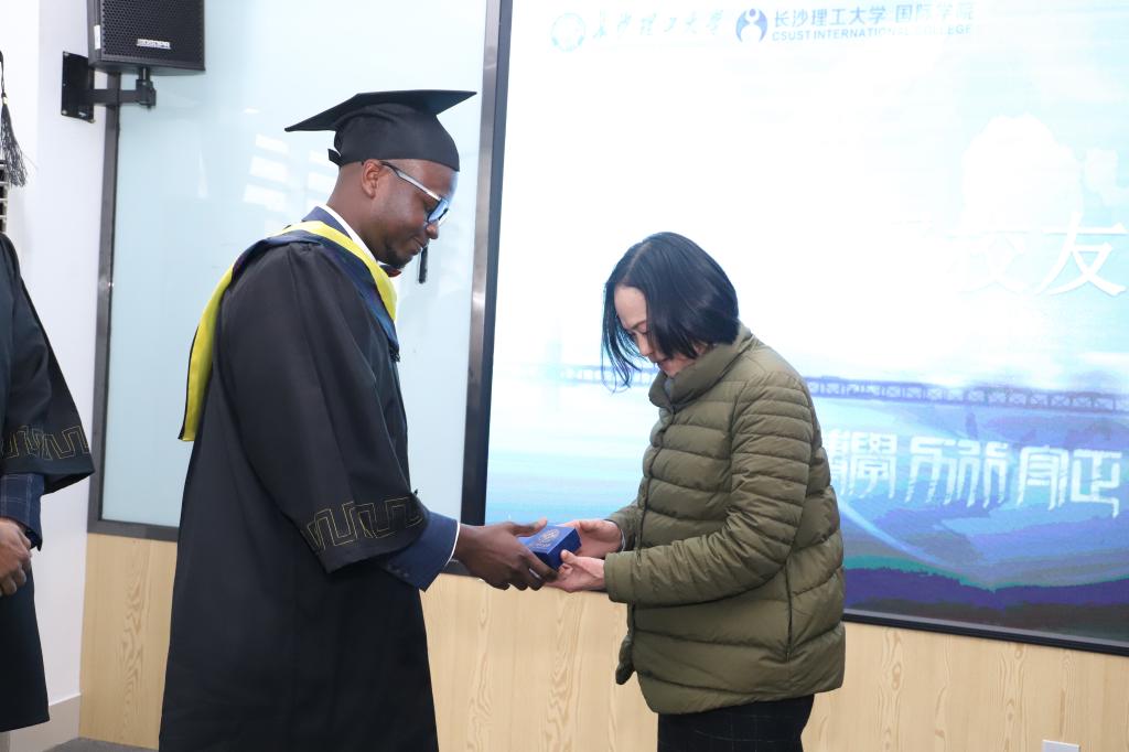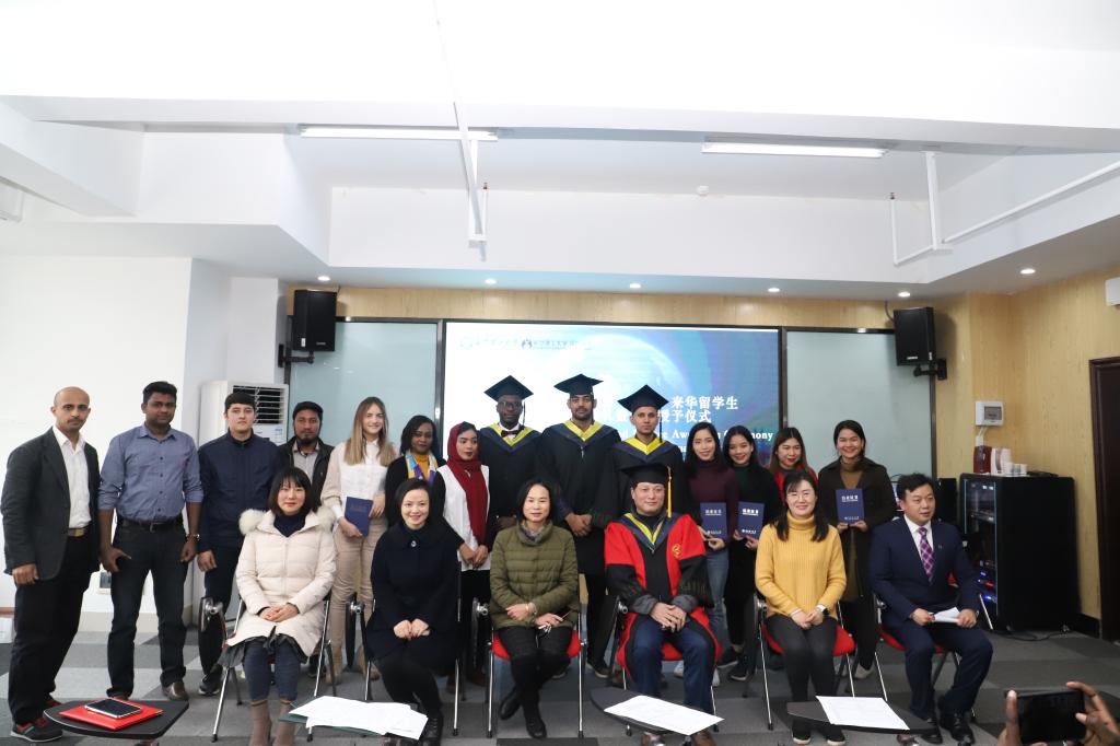 随后,甘海鹰宣读了《关于表彰2020届国际学生优秀毕业生的决定》《关于表彰2020届国际学生优秀结业生的决定》,付嫦娥为优秀毕业生开文(加纳籍)和优秀结业生伊娜(苏丹籍)、庄远(也门籍)颁发证书。