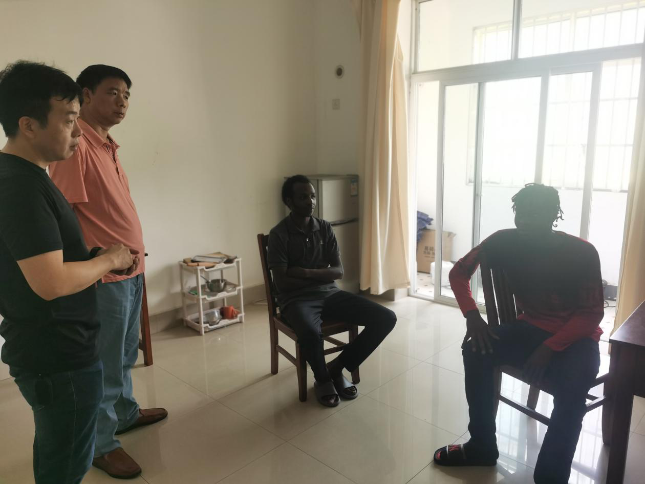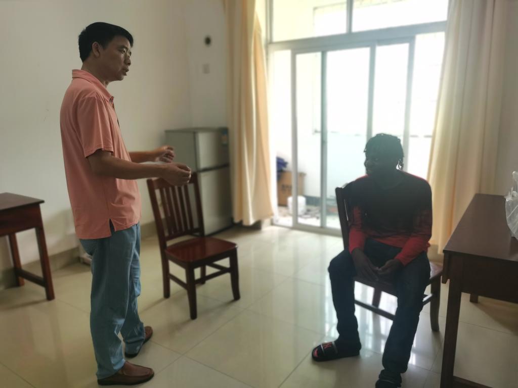 8月31日,国际学院党总支书记刘安生及留学生工作部的老师们来到留学生公寓看望生病的肯尼亚籍留学生MILINGO HEMPSTON SMITH(白志文)。