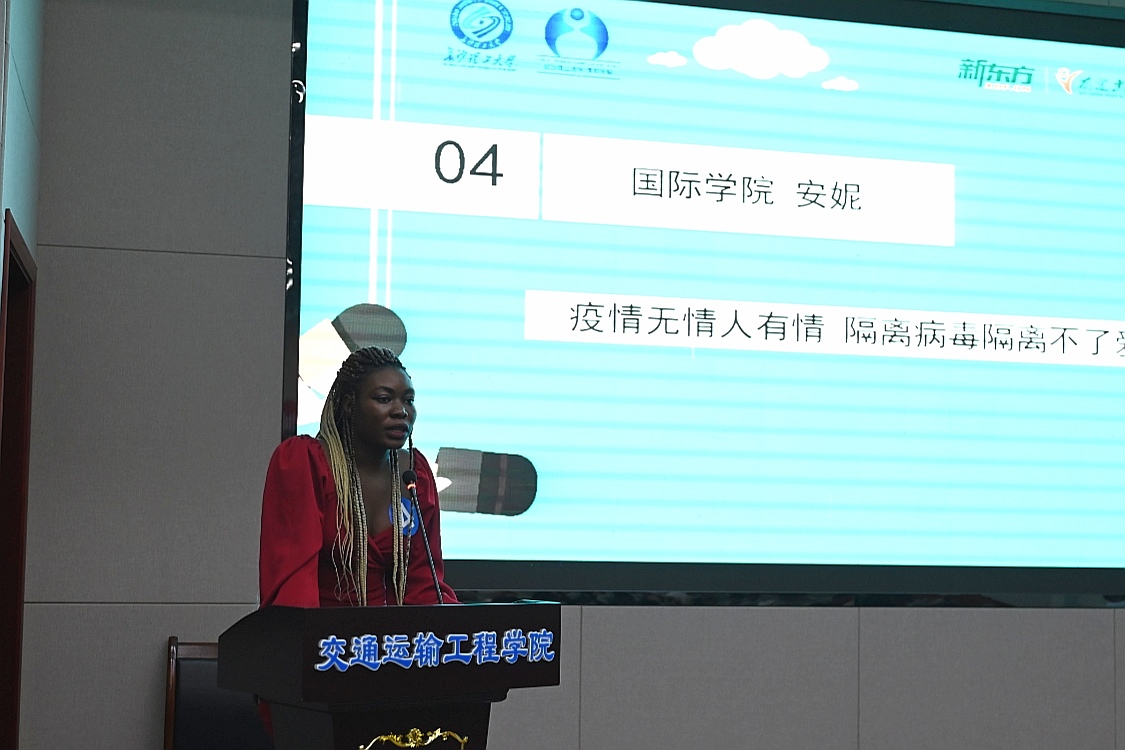 “你什么时候回国?”新冠肺炎疫情在中国扩散时,肯尼亚留学生崔浩的家人对他很担心,希望他马上回肯尼亚。但他选择留下来,因为他相信学校、相信中国。多哥留学生安妮在演讲中说到:“老师们每天都会询问学生们的健康情况,发放免费口罩,普及防疫知识,传递疫情快讯等,这些行为激励着她,让她对这场疫情保持着积极的心态,坚信中国人民一定能战胜疫情”。“老挝留学生王思晨看到面对疫情挺身而出的中国医护人员,钦佩他们舍小我保大我的奉献精神,感受到人民群众众志成城对抗疫情的决心,敬佩中国政府在抗击疫情中所表现出的专业精神”……留生们有的从自身生活环境出发,有的从关键事件娓娓道来,讲述防控期间我院师生共抗疫情的故事,充满着战胜疫情的信心与决心。在这次疫情中,留学生们见证了中国的力量,感受到了中国的温暖。他们用声音传递了抗击疫情的力量,诠释了当代青年的使命和担当。