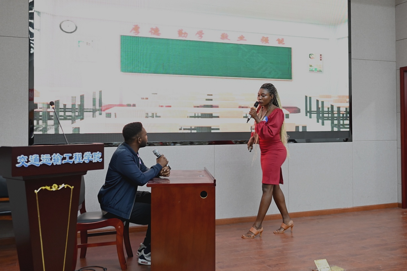在第二轮的语言表演环节,同学们分组以生动的形式展现了各自的汉语水平。来自贝宁的陆刚通过情景剧的形式为大家展现了他学习汉语的故事,告诉在座的留学生们不仅要学好汉语课堂的知识,更要在生活里体验中国文化。来自老挝的王思晨和肯尼亚的崔浩为我们带来的《功夫熊猫》电影片段配音中,他们以连贯的表达、标准的发音和恰到好处的情绪,生动有趣的演绎获得了在场师生们的一致好评。第三组选手围绕“电脑是否会取代书本”展开了辩论,其中来自肯尼亚的李元舟有条不紊地阐述观点,生动地讲述论据故事,博得了阵阵掌声。留学生们生动演绎了自己的在华生活,展示了汉语学习的成果,表达了对中华文化的热爱和对中国深厚的情谊。