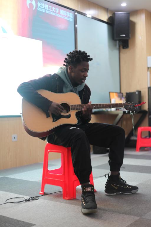 在“你来比划我来猜”游戏环节,中外学子随机抽签成组。游戏题目丰富多样,既包含了成语、当下热词,还加入中国诗词,用丰富的中国文化底蕴彰显了活动的趣味性。来自卢旺达的留学生Innocent为大家吉他弹唱歌曲;留学生展示了舞蹈天赋。文化交流气氛热烈,受到中、外学生的热烈欢迎。