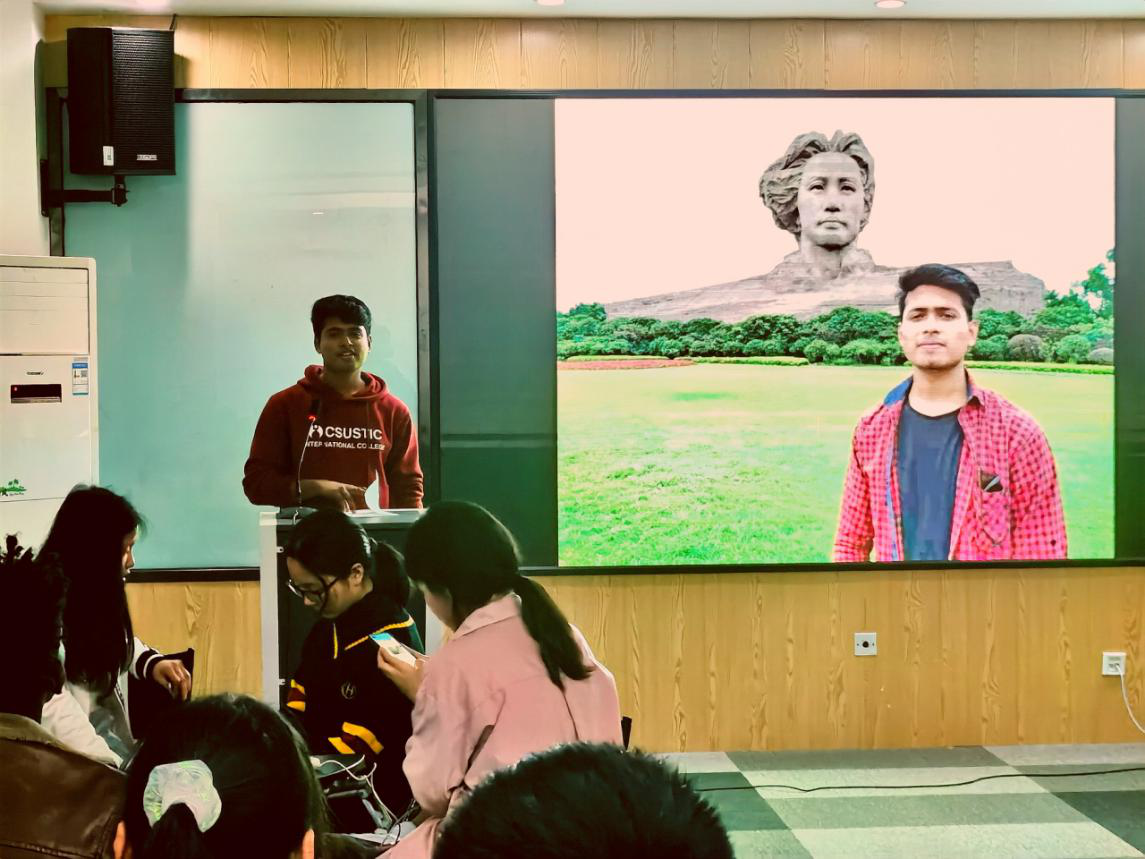 活动伊始,大家分享了自己心中“榜样”的故事与精神。来自孟加拉国的苏汉同学饱含深情地朗诵着毛泽东主席的《沁园春·长沙》,“独立寒秋,湘江北去,橘子洲头...”,抑扬顿挫、声情并茂中饱含着他对毛主席的钦佩与敬仰。来自肯尼亚的王达观同学谈到了特斯拉首席执行官埃隆·马斯克。他说到:“最欣赏和佩服埃隆·马斯克的自律,以及创造新事物的能力”。中国学生王欢乐同学心中的榜样是著名生物学家施一公先生。施先生不惧挫折,始终乐观、积极和坚持的精神深深地影响着他。还有留学生表示在浦京组织的“学习雷锋,美化校园”的志愿服务活动中,切实体验到肩负责任感和志愿服务的雷锋精神以及团队合作精神,在未来要履行雷锋精神,向榜样看齐。即使每个人心中都有不同的榜样,但每一个积极向上、乐观且努力的人都值得我们学习。