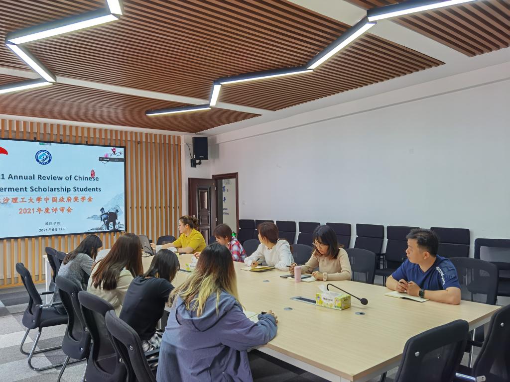 为保证中国政府奖学金生的质量,根据国家留学基金委要求,浦京于5月11日至5月12日举行了2021-2022学年中国政府奖学金年度评审学生个人汇报会。国际学院副院长甘海鹰及留学生工作部、教学部相关人员出席汇报会,听取学生汇报。