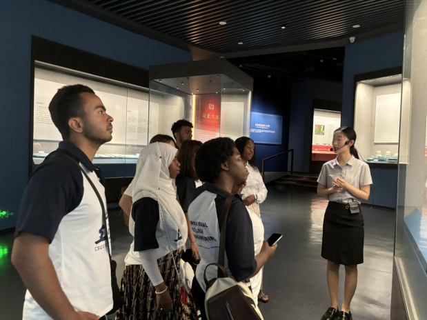 首先,留学生们参观了鹏窑展览区,从古朴典雅的青花瓷到斓的釉下彩,陈列着各式各样的陶瓷作品,通过聆听讲解、细致观赏,学生纷纷震撼于陶艺的瑰丽面貌。随后,学生走进陶瓷制作车间沉浸式体验陶艺。瓷土在瓷窑中升温,素胚在工匠笔下添彩,从挑选泥土、揉泥、拉坯、修坯到上釉、烧制,学生在寓教于乐中逐步掌握制作陶瓷的基本技巧,赋予泥土新的生命力,切身感受中华陶瓷文化的深厚底蕴。画瓷后,学生走进醴陵陶瓷博物馆,实地感受醴陵陶瓷的历史与演变,传承与创新。学生不仅欣赏到中国传统的瓷器精品,更见识到了丝路上流传的极具异域风情的瓷器。