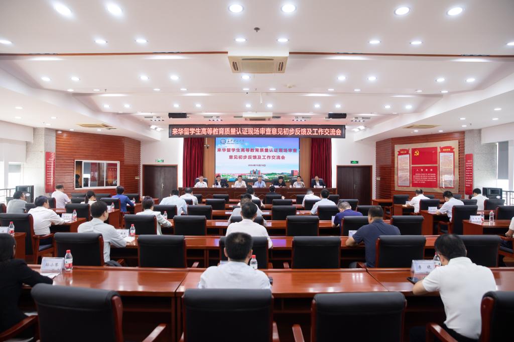 曹一家在学校来华留学工作报告中重点介绍了学校基本情况、来华留学教育工作现状、认证启动以来自评自改成效和学校来华留学工作未来发展规划和举措。他表示,学校将进一步发挥国际化办学优势和特色,优化留学生培养质量和管理服务水平,积极搭建多元化交流学习平台,着力培养更多知华友华爱华的国际学生,促进留学教育工作提质增效,提升国际化办学实力和影响力。