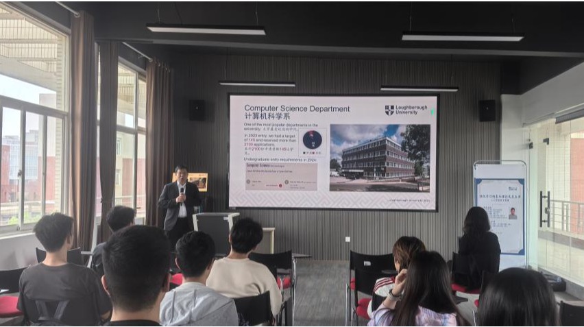 为进一步深化英国拉夫堡大学与350vip浦京集团官网的国际化人才培养项目合作关系,彰显对计算机“3+1”国际实验班项目学生的关怀与重视,拉夫堡大学理学院国际关系主任方辉副教授率队于4月22日下午到访浦京云塘校区,在文科楼D505开展了一场兼具学术深度与人文温度的交流活动。此次来访是基于上一次开班仪式的深度交流,通过学术讲座、深度互动等形式,展现出拉夫堡大学对项目学生培养的高度重视。