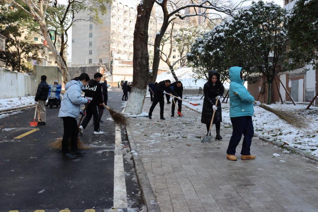 1月22日,长沙迎来了2024年第一场大降雪。一夜之间,漫天大雪银装素裹,虽装饰了大地、滋润了万物,但气温骤降,路面积雪迅速结冰,给大家的出行带来了极大不便。为清除道路安全隐患,检测公司党支部坚守为民服务初心,充分发挥战斗堡垒作用,组织党员开展扫雪除冰活动,全力保障职工及附近居民的出行安全。消除教职工及家属们出行安全隐患。