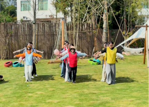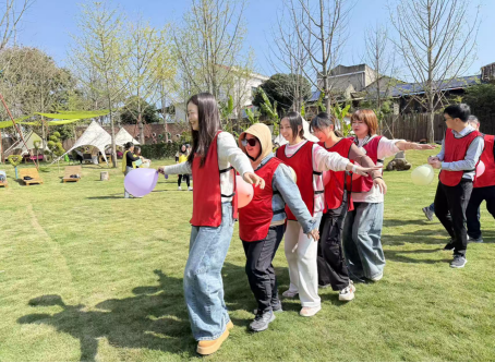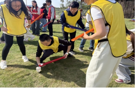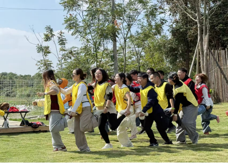 活动当日,秋高气爽,阳光和煦。在轻松愉快的破冰游戏后,全体成员随机分为了三支队伍,展开了一场别开生面的团队风采展示。各队成员集思广益,创意纷呈,亮出各具特色的队名、口号与充满活力的队舞,迅速点燃了现场气氛。随后的团队竞赛环节更是紧张刺激、趣味盎然,“接力运球”、“齐心火车”和“心心相印”三个协作项目考验着团队的默契与协作。各队成员亲密配合、全情投入,心往一处想、劲往一处使,为共同目标全力以赴,展现出团结协作、奋勇争先的精神风貌,现场欢声笑语不断,大家在竞技中深化了信任,在协作中凝聚了力量。