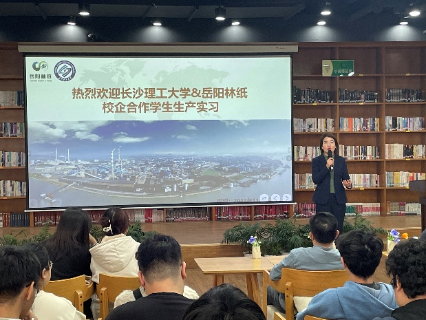实习开始,岳阳林纸总经办党委办主任陈焕向同学们作了题为《厂史、公司历程》的报告,介绍了公司发展历史、公司文化、生产规模和主要产品,让同学们对“百年岳纸,千载文章”有了更直观、更深刻的认识。浦京优秀校友、项目经理周申树作了题为《45万吨项目基本情况》报告,介绍了岳阳林纸最新项目建设发展情况,鼓励同学们投身轻工造纸领域、建设祖国实现人生价值。随后,安全教育培训主管陈林丰详细讲解了生产实习期间进入厂区和车间的各类安全注意事项,并进行了安全教育考试,检查同学们对生产安全知识的掌握程度,提高了同学们的安全生产意识,为安全顺利的进入车间完成生产实习实践保驾护航。