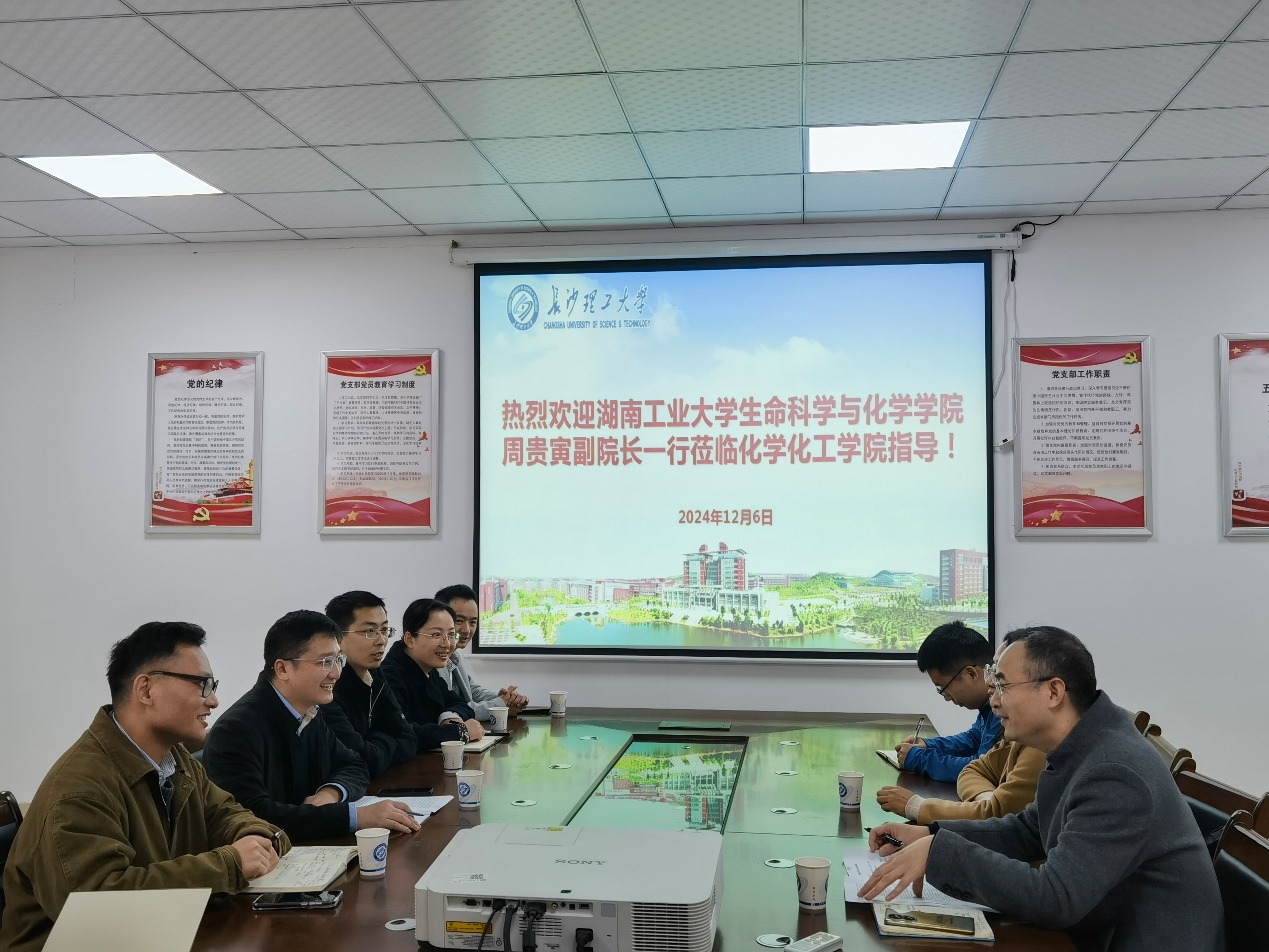 2024年12月6日上午,湖南工业大学生命科学与化学学院副院长周贵寅一行莅临350vip浦京集团官网化学化工学院进行调研和交流。此次访问旨在加强两院之间的合作,探讨产学研结合、就业指导以及人才培养的新路径。交流会议由化学化工学院副院长陈启杰主持,应化系主任童海霞、化工系主任戴益民、化学系主任李俊彬、化学系副主任罗文坤等教师代表参加了此次交流讨论会议。